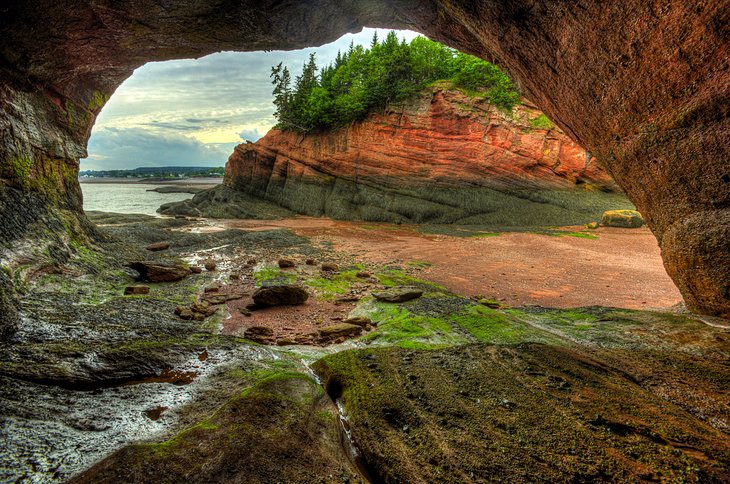 The Bay of Fundy, located in Eastern Canada in between New Brunswick and Nova Scotia, is known for its amazing tides. The variation between high and low is the largest in the world, measuring up to a maximum of 19 meters (10 fathoms). While there are many ways to appreciate this natural wonder, some of the most popular locations and sights along the Bay of Fundy are the cliffs and rock formations at Hopewell Cape, Fundy National Park, the Fundy Trail Parkway, and Grand Manan Island.