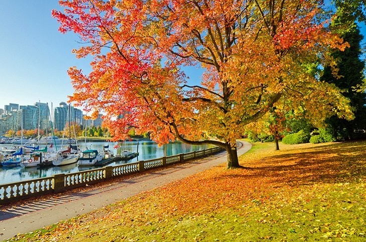 One of Vancouver's greatest treasures is the 405-hectare Stanley Park, conveniently located on the west side of the downtown area. Situated on a peninsula, the park is surrounded by the ocean and home to huge red cedar and Douglas fir trees. The seawall, which rings the park, has an extensive walking, jogging, and biking path with designated lanes for walkers and bikers. From the seawall are some lovely views of the city and mountains. A scenic drive also winds through Stanley Park with numerous pullouts. Within the park are the Vancouver Aquarium, scenic Beaver Lake, and the Stanley Park Pavilion and Rose Garden. Also of special interest are numerous totem poles, some of which were erected more than 100 years ago.