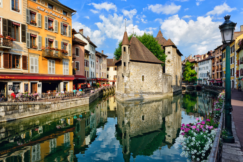 Annecy lies in the Rhone Alps at the northern end of Lake Annecy. This picturesque capital of Haute-Savoie was once part of Switzerland and Sardinia, but joined France in 1860. The medieval town is divided by small canals and streams running out of Lac Annecy, which is clean, fresh and has a wonderful azure color. A top attraction is the Palais de l?Isle that sits in the middle of a canal.