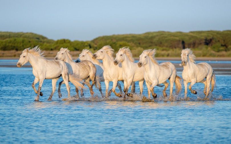 Located between the Mediterranean Sea and the Rhone River delta, the Camargue is the largest river delta in Western Europe. The wetland area is famous for its teeming birdlife ? about 500 species including the pink flamingo. Equally famous are the Camargue?s small white horses which roam the extensive marshlands.