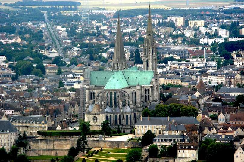 The Chartres Cathedral is located in a small city near Paris that seems too small to fit the Cathedral. The vast nave, the porches adorned with fine sculptures and the magnificent 12th- and 13th-century stained-glass windows, all in remarkable condition, make it one of the finest examples of the French High Gothic style.