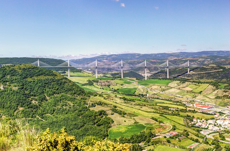 The Millau Bridge or Viaduct is a cable bridge that happens to be the tallest bridge in the world at 343 meters (1,125 feet). The four-lane bridge spans the valley of the River Tarn in southern France. Opening in 2004, the bridge is considered one of France greatest engineering feats.