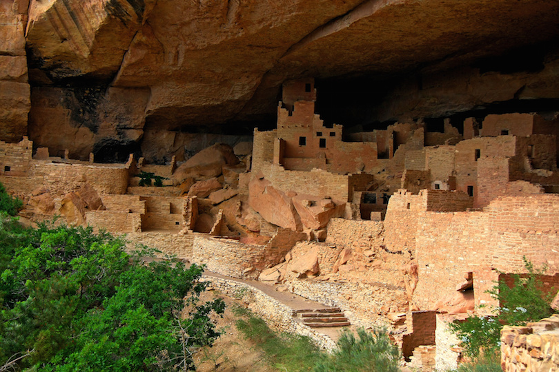 The Mesa Verde National Park in Colorado is home to the preserved homes of the Ancestral Pueblo people. Many of these homes, which are carved right from caves and rock faces, date back to the early 13th century. Today, it is possible to walk beneath the overhanging cliffs and tour these ancient abodes. The Balcony House is especially well preserved, and it boasts 40 rooms that are accessible exclusively by ladder. The nearby Cliff Palace is even bigger, and it is believed to have housed more than 100 people in its 150 original rooms.